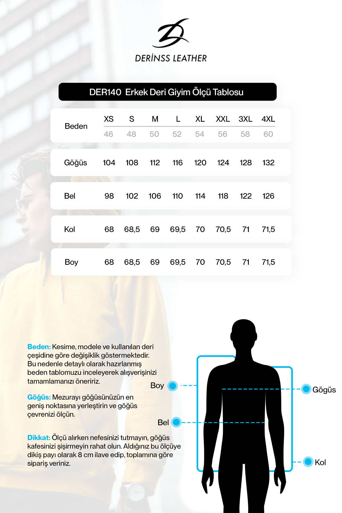 DERİNSS DER140 Hakiki Deri Erkek Kapüşonlu Siyah Mont